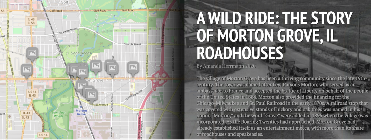 I was delighted to see how much interest people had in this StoryMap and timeline of Morton Grove’s Speakeasies and Roadhouses! It is fairly easy to create one of these StoryMaps yourself using free online software. You can make an easy to share and accessible story for your friends and family. All you need is a story and a little time.