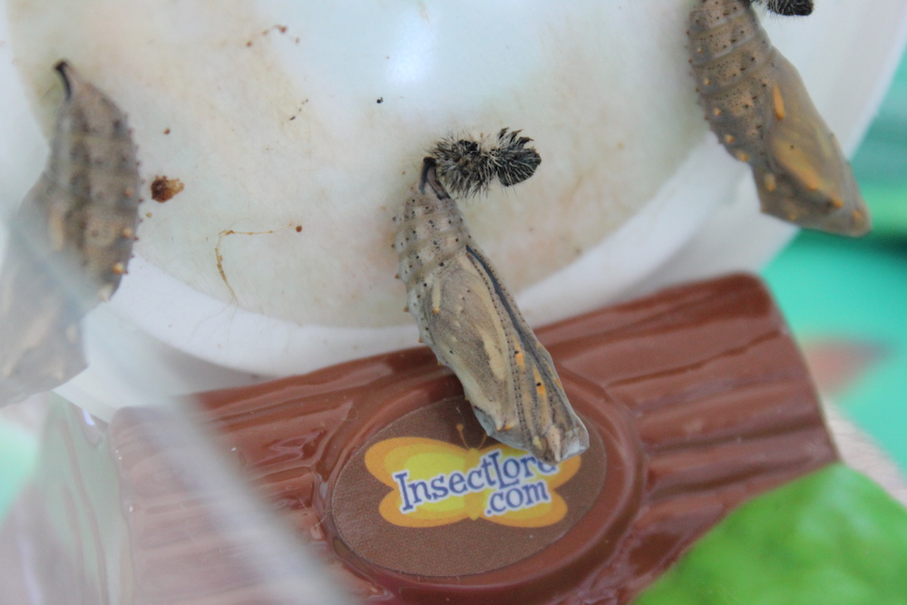 After about 10 days, the caterpillars twisted themselves into their chrysalides to begin their transformation.