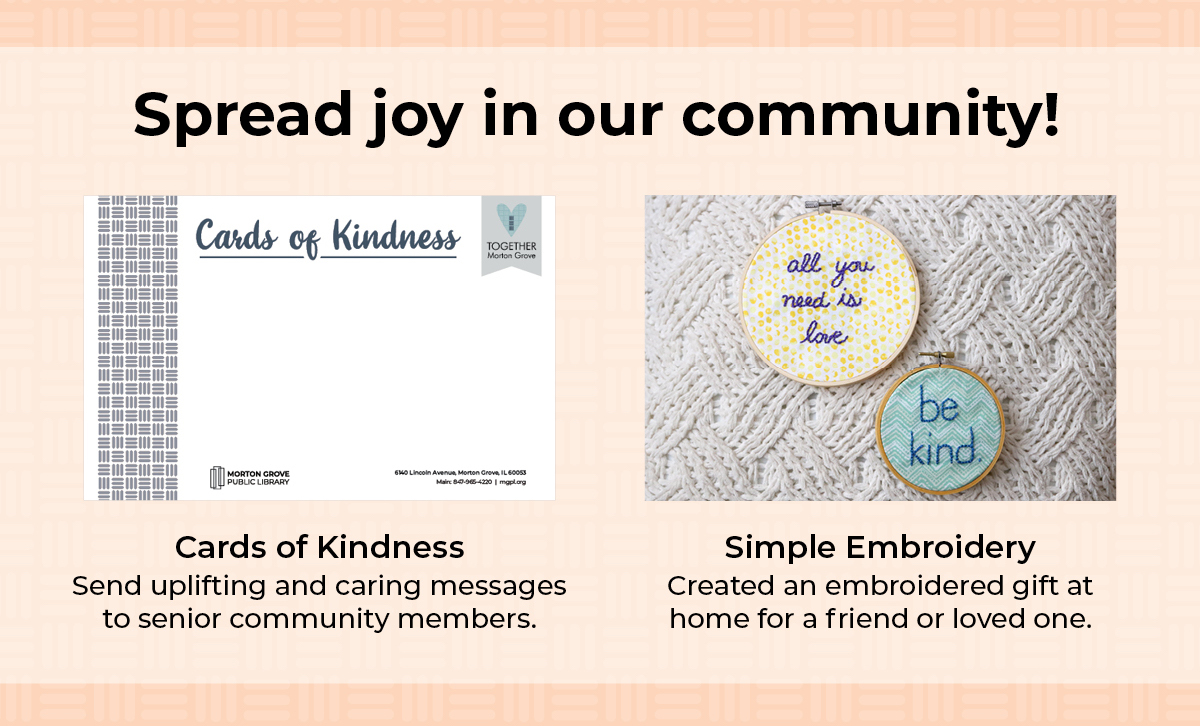 As we find our lives disrupted by COVID-19, our community is more important than ever. With this in mind, the Library has created two unique opportunities to show support and encouragement to our family, friends, and neighbors through a new initiative called Together Morton Grove.