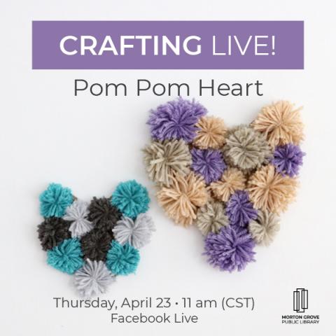 Join the Library's graphic designer Karina for a weekly craft tutorial on Facebook Live. This week's craft: Pom Pom Heart